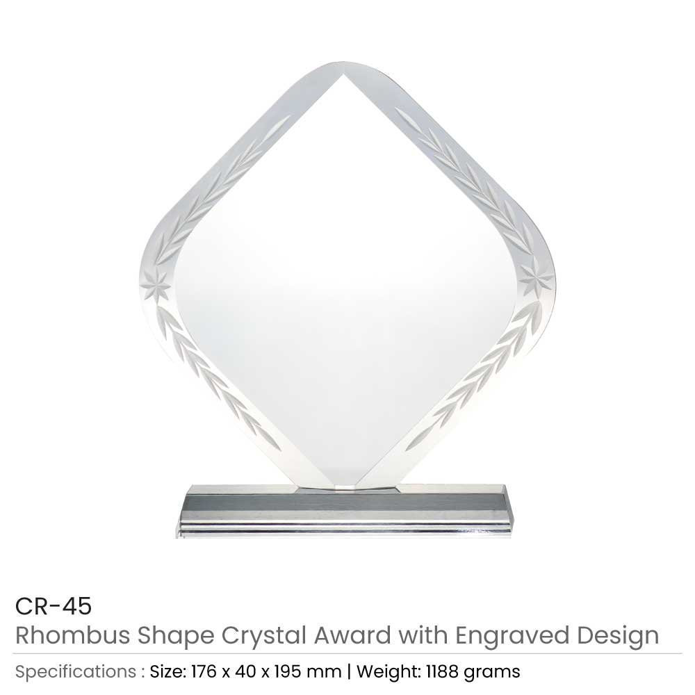 Rhombus Shaped Crystal Awards with Engraved Design