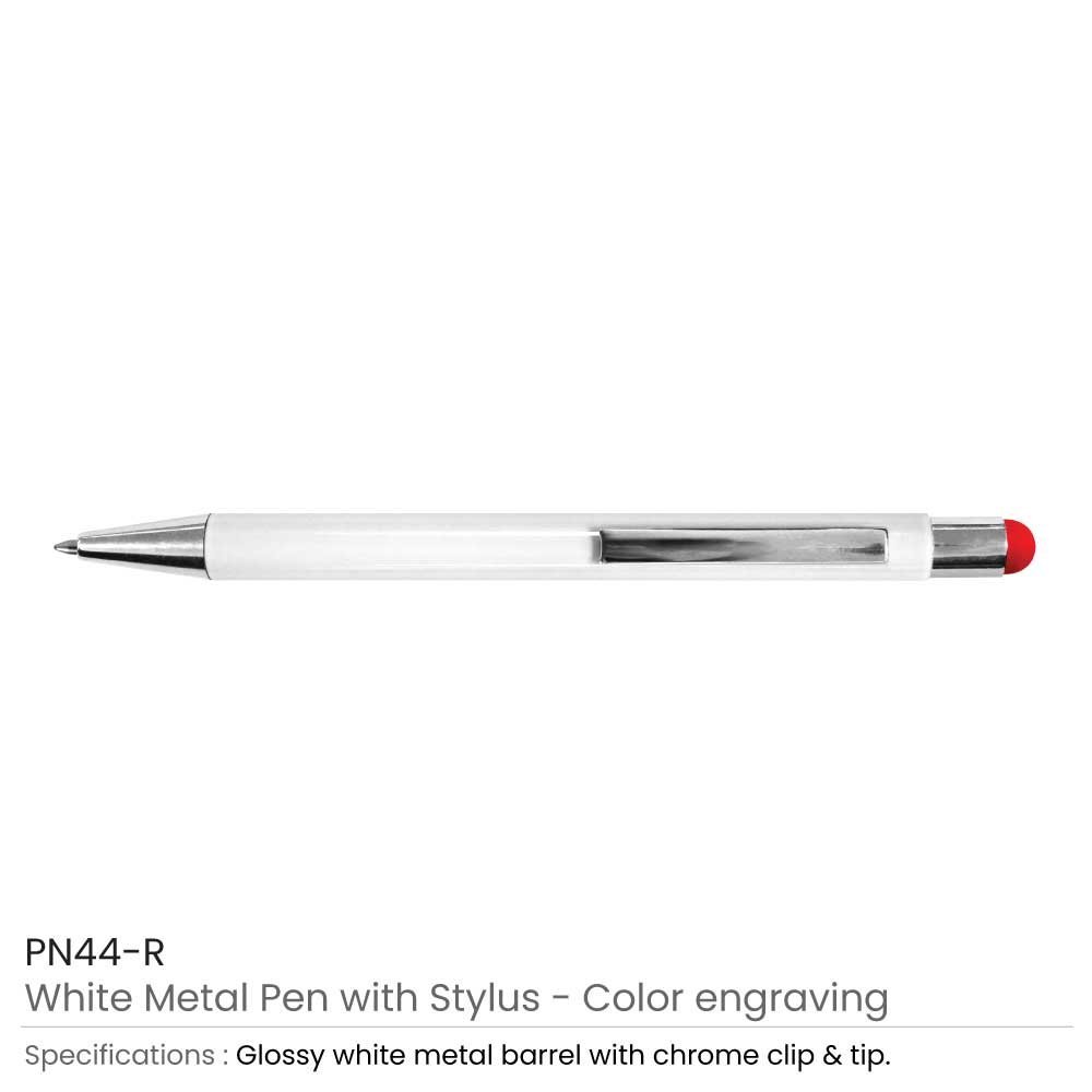 Metal pens made by Stylus are chic and sophisticated. They used a sturdy metallic material to build. They are hence strong and long-lasting. This pen has a white metallic barrel that is shiny. As a result, it appears shiny. The tip, on the other hand, is made of chrome and has a metallic silver appearance. As a result, the pen?s entire structure is shiny. It is also a 2-in-1 pen. The stylus is located at the pen?s top. It comes in a variety of colors and is vibrant. As a result, your cell phones can use it.