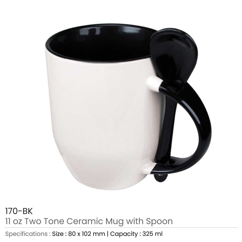 Two-Tone Ceramic Mugs with Spoon 11 oz
